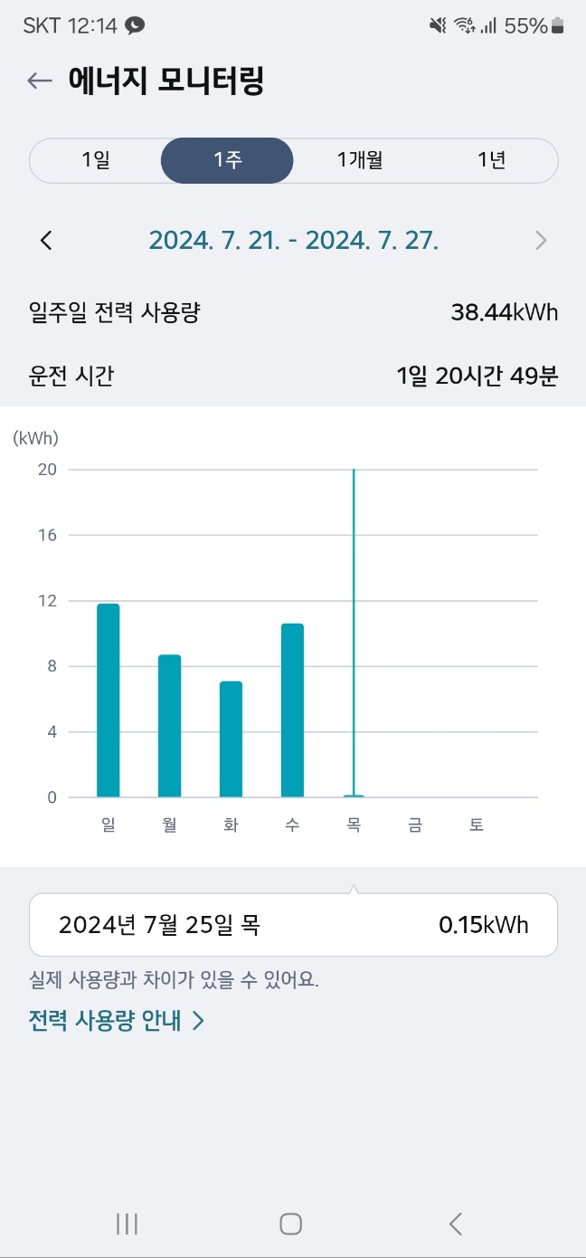 LG ThinQ 어플에서는 오늘 얼마나 에어컨을 틀었는지, 이번주 혹은 이번달에 얼마나 에어컨을 틀었는지의 데이터 통계를 확인할 수 있습니다.