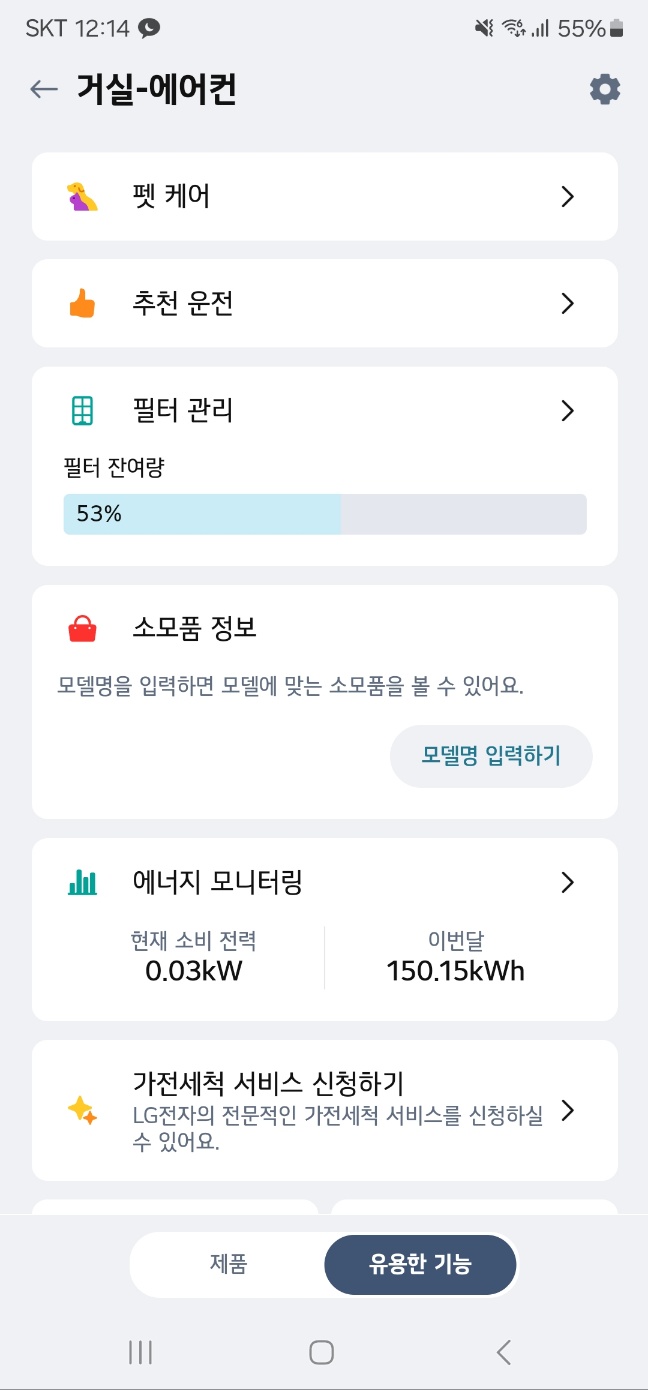 무엇보다 정말 좋은 건, 집 밖에서도 인터넷만 연결되어 있다면 언제든지 LG ThinQ 앱에 연결되어 있는 엘지 가전들을 끄고 킬 수 있는 점입니다.